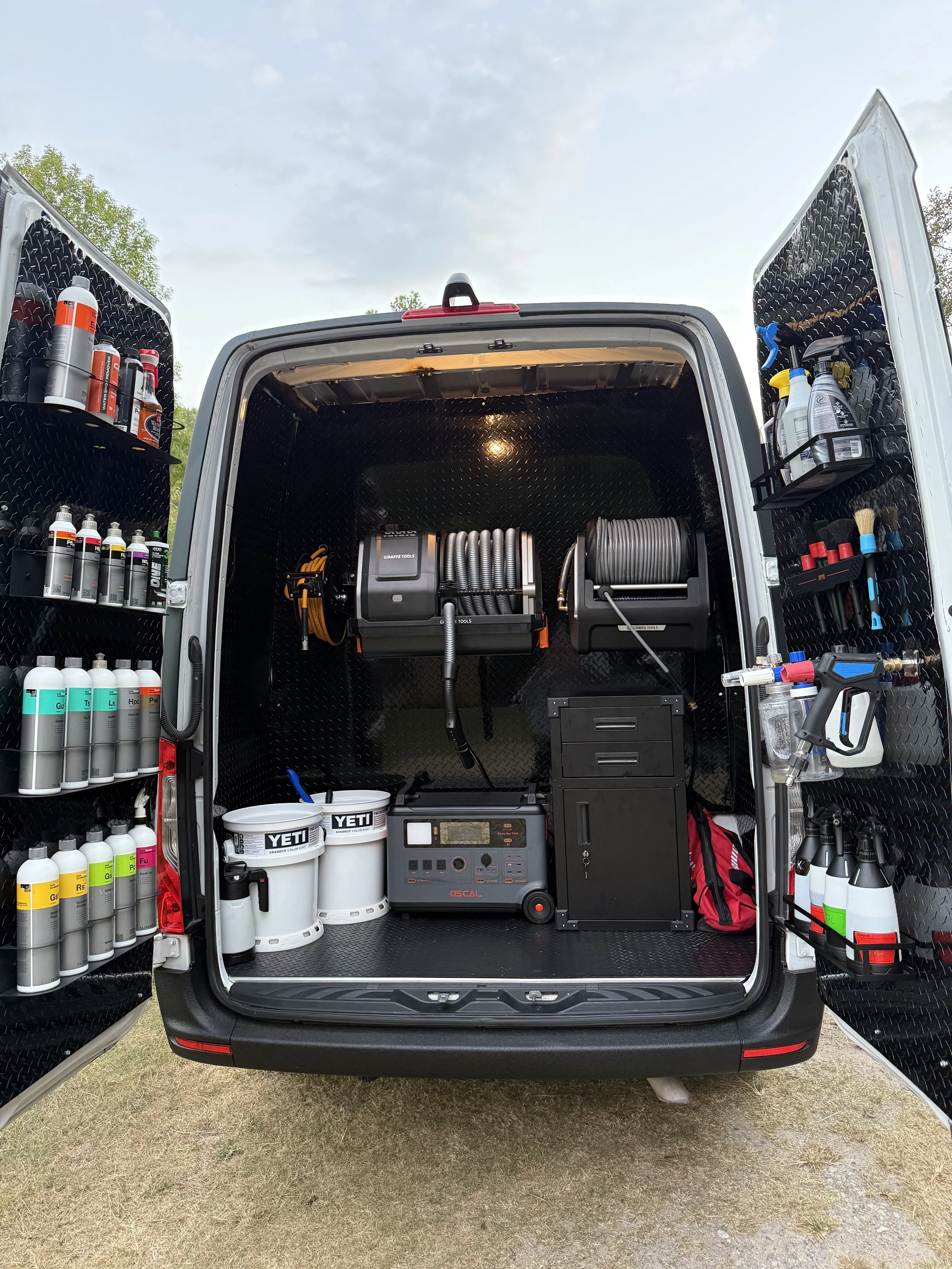We like to use Light Chemicals, Rinse-Less Washes, Low PSI water, Soft Bristle Brushes, and most importantly… WE TEST OUR PRODUCTS!